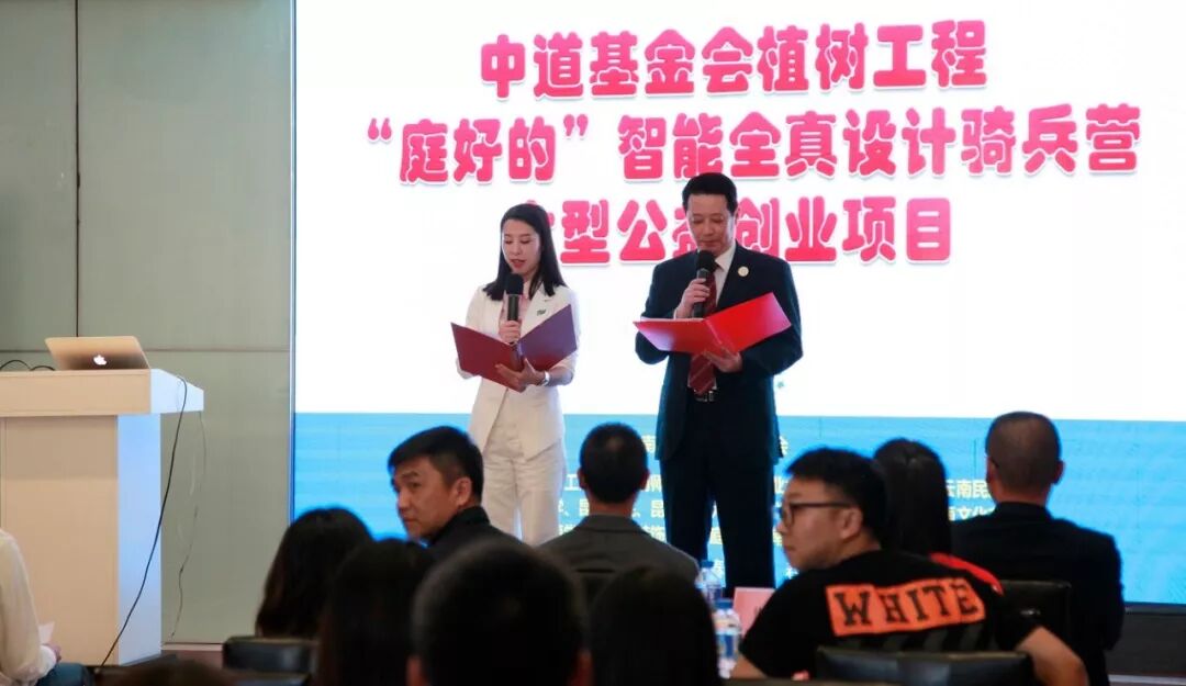 仪式由中道基金会会长张银生先生致辞开始。之后在到场嘉宾的见证下“中道基金会植树工程之云南“庭好的”智能全真设计骑兵营大型公益创业项目”捐赠仪式正式启动。